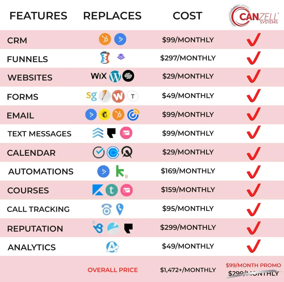 CRM, lead pipelines, email/SMS campaigns, automations, calendars, scheduling, reviews, and more. No more switching between apps.